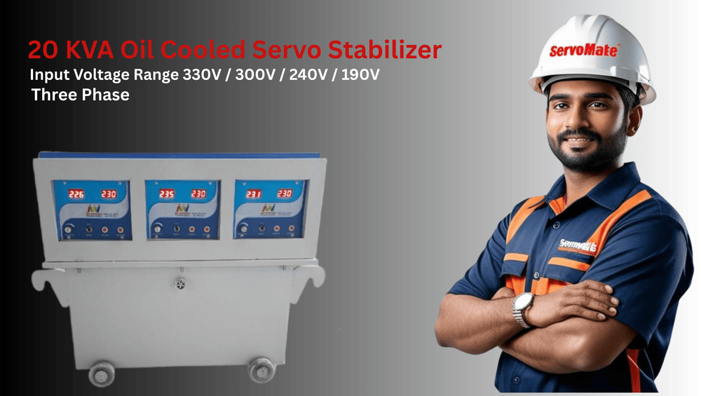 If you are looking for a reliable and efficient 20 KVA Servo Voltage Stabilizer (Oil Cooled) for your industrial or commercial setup, Servomate by HCS Power Ventures Pvt. Ltd. offers the perfect solution. Designed to handle wide input voltage fluctuations from 330V to 470V (Three Phase), this stabilizer ensures consistent and regulated power supply, protecting your equipment from voltage-related damage.